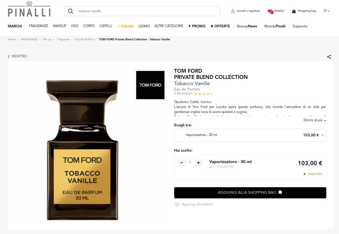 Se volete acquistare fragranze di designer, e non è il mese del vostro compleanno, non dico che Pinalli non sia conveniente, ma Notino probabilmente lo è di più.