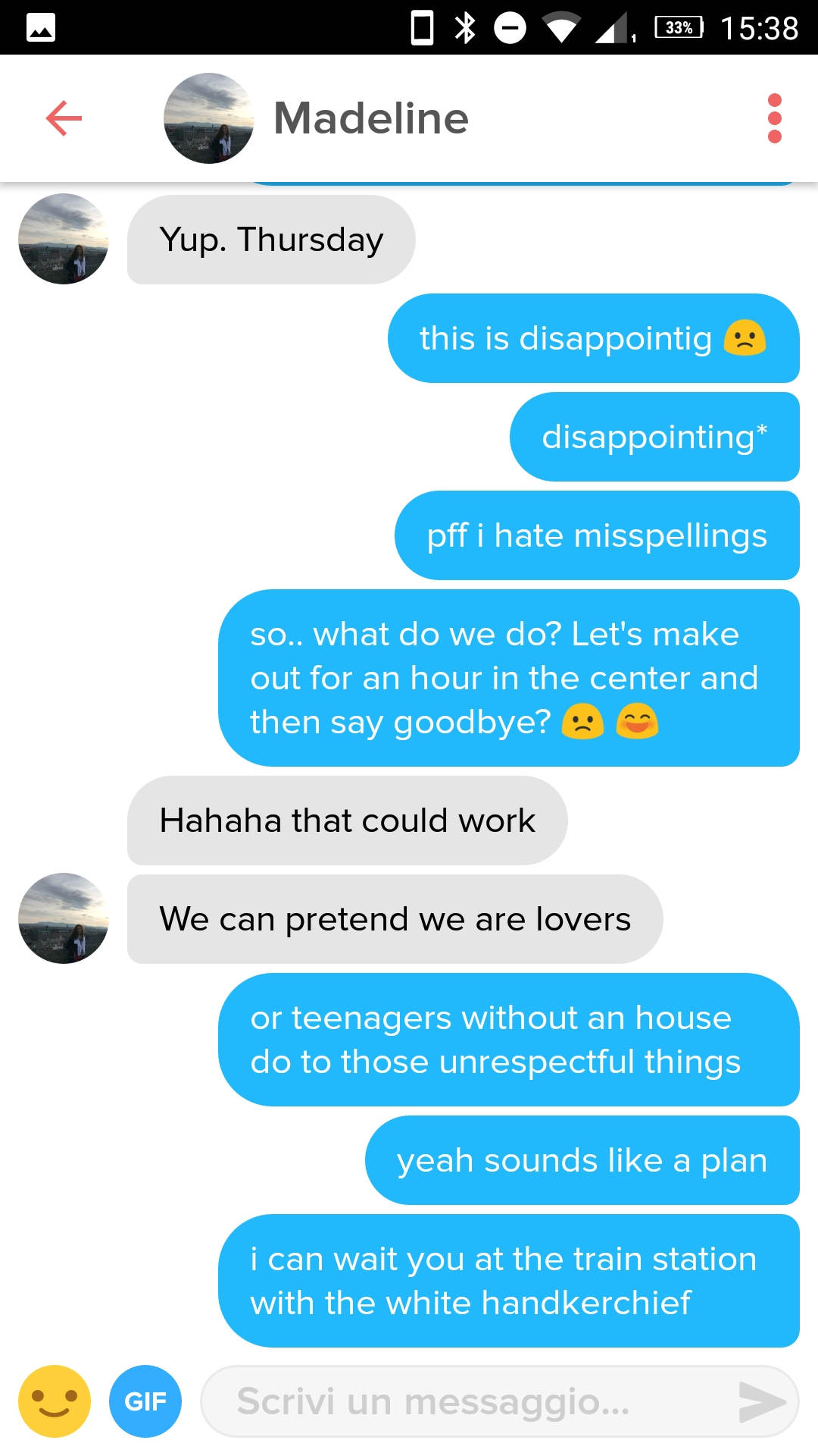Mi dispiacerebbe perdere questa occasione, perchè dal profilo instagram sembra che abbiamo diverse cose in comune!